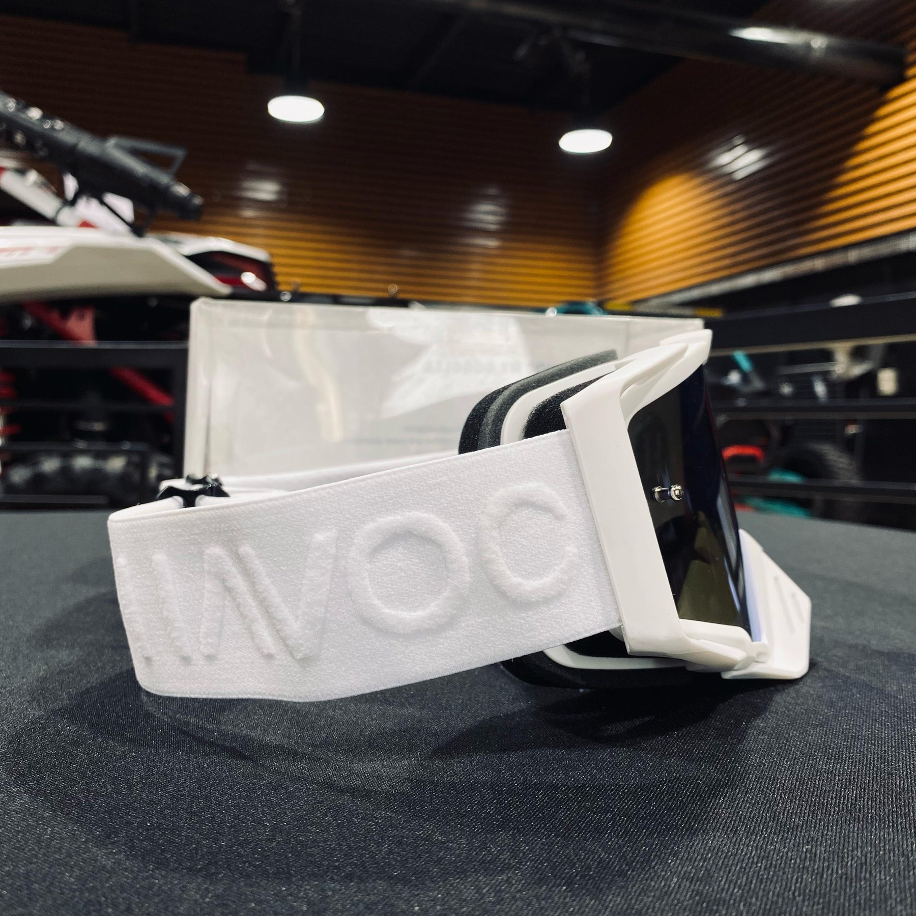 Goggle, POWDER, Elite Design, White, Blue Pre-Curved lens, Each